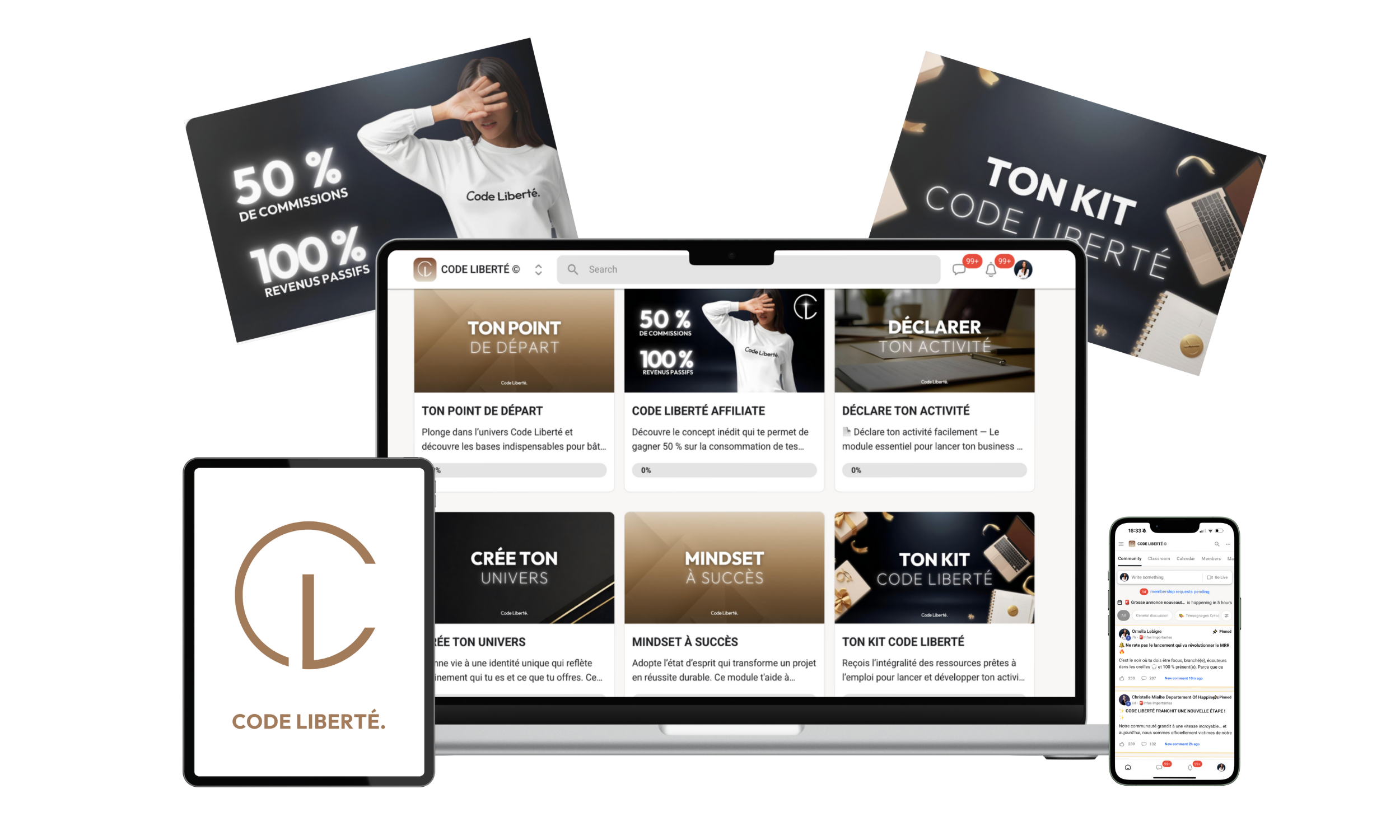Tu reçois la formation Code Liberté et aussi l'accès à une communauté gratuite d'entrepreneurs du monde entier, tout niveaux d'expérience confondu, prêts à se connecter avec toi et te soutenir !
